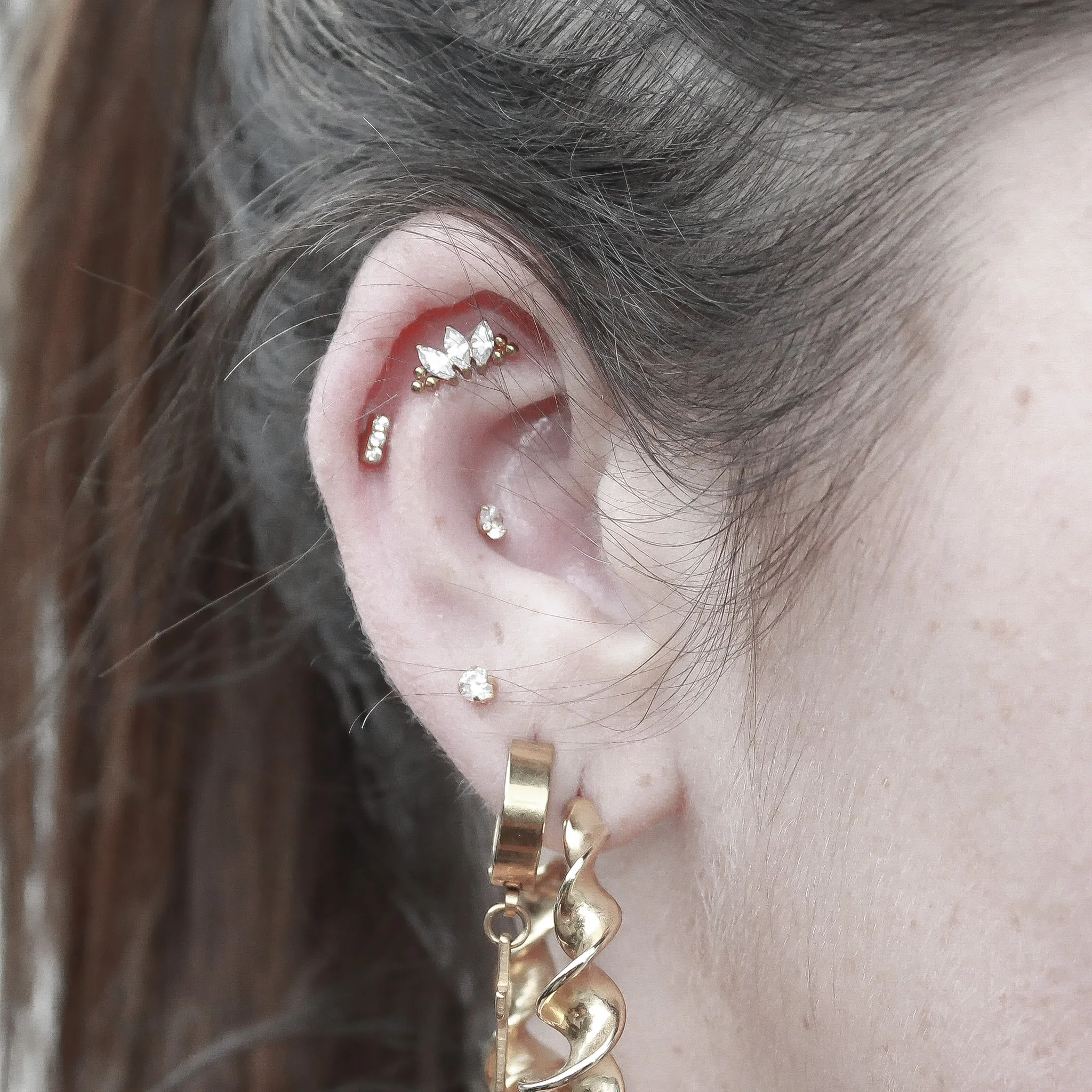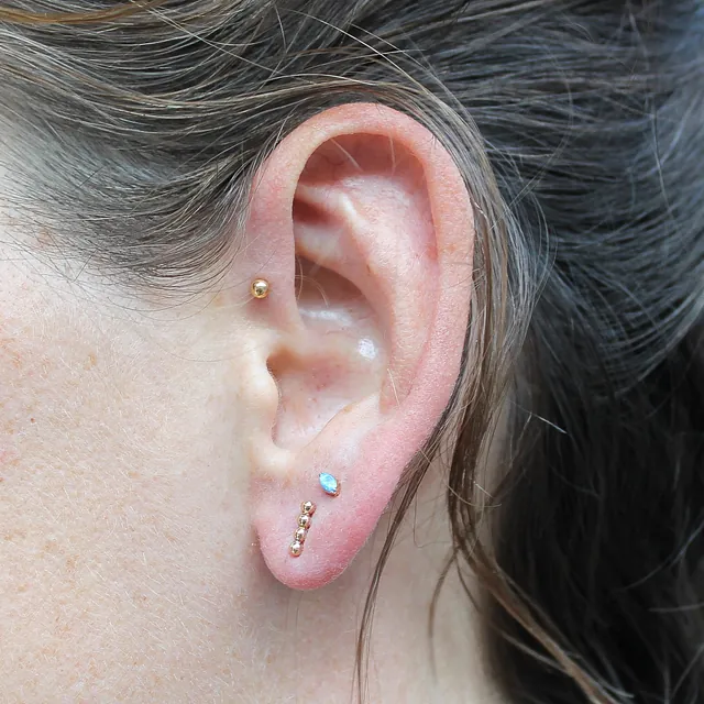 Je ne pose que des bijoux en titane ou en titane gold c'est à dire du titane avec une couche d'or épaisse qui offre une très bonne durabilité. Ces deux matières sont les meilleures matières à implanter sous la peau ave un risque minimum d'allergie si vous avez la peau fragile et une cicatrisation optimale.