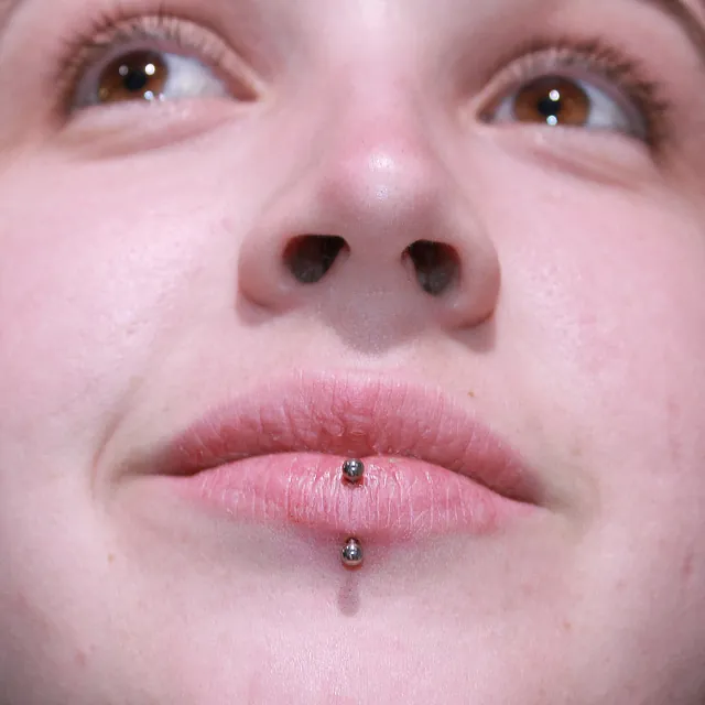 SUR TOUS LES PIERCINGS LABRETS ET LANGUES UN CHANGEMENT DE BIJOU EST COMPRIS DANS LE TARIF, UNE SEMAINE APRES LE PIERCING NOUS INSTALLERONS UNE BARRE + COURTE POUR VOTRE CONFORT